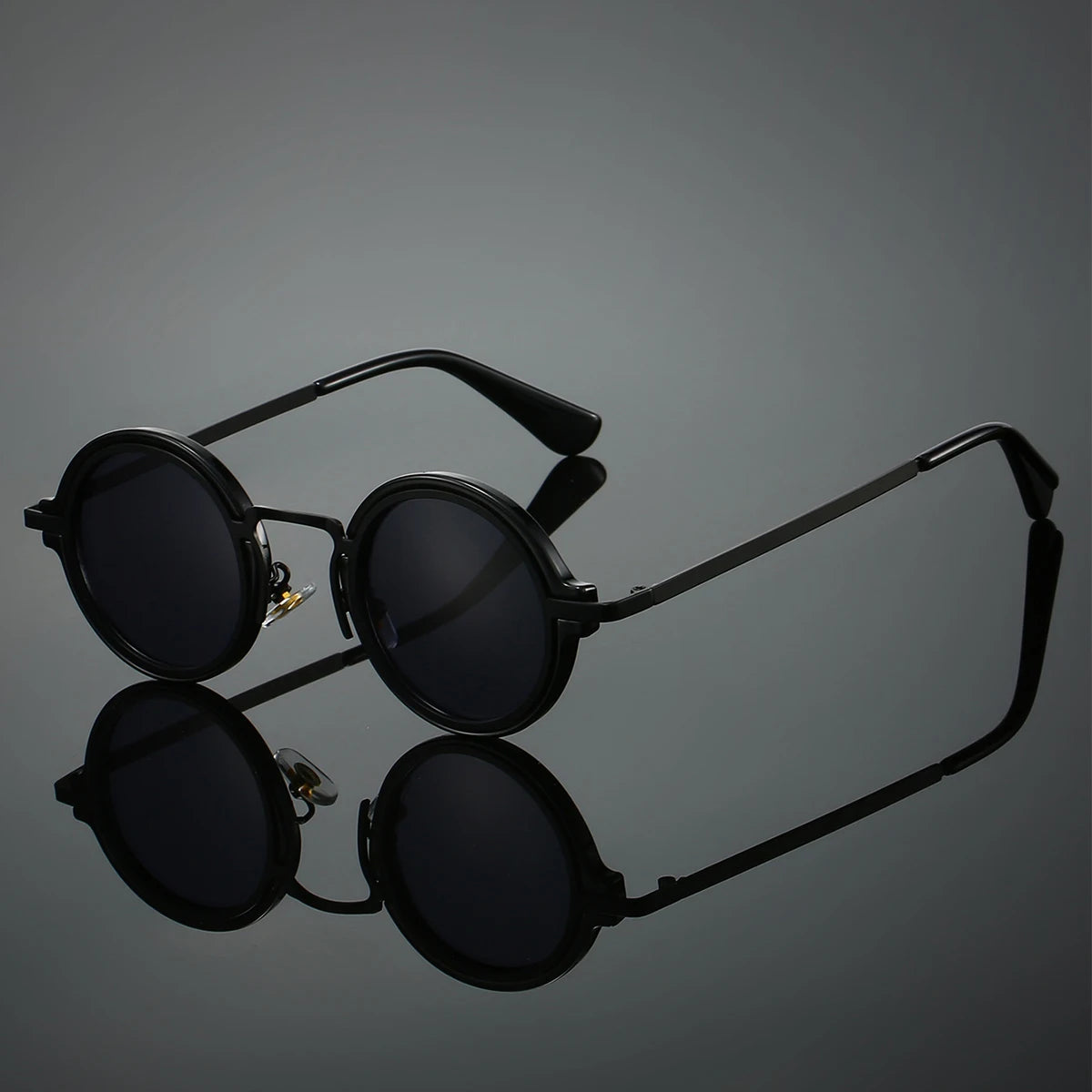 Classic round frames with a sculptural silhouette. The dual tone acetate and metal frame adds dimension, while precision cut curves and architectural detailing give these sunglasses a refined, avant grade presence.